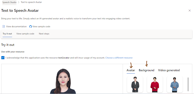 Here we are planning to test how text can be converted to speech, scroll down and look for “ Text to Speech avatar ” and click on “ Try out Text to Speech avatar ”